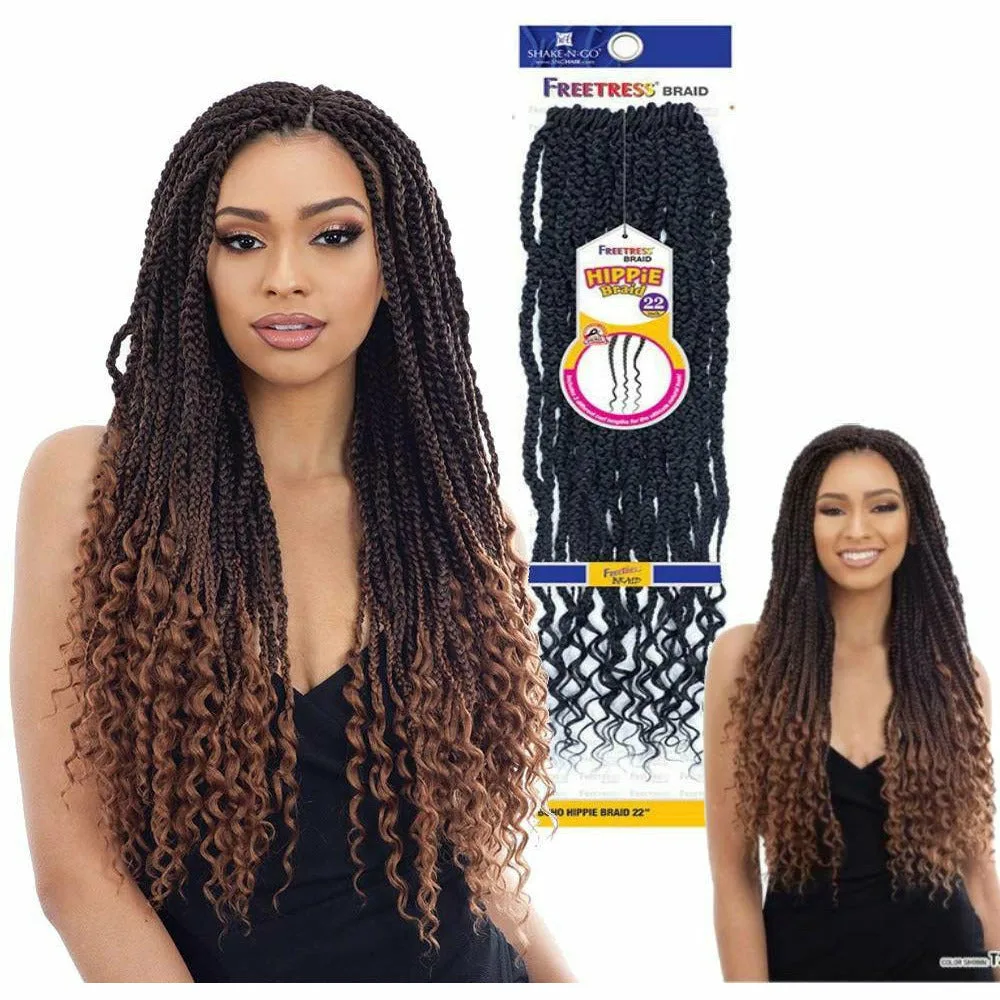 FreeTress: Hippie Braid 22" Crochet Braids DISCONTINUED ITEM Check out our gorgeous & unique collection of Freetress Braid! HIPPIE SERIES feature 3 different curl lengths at the end of loc/braid for the ultimate natural look! Crochet & Latch Hook Individually Pre-Looped Includes 3 Different Curl Lengths for the Ultimate Natural Look! FINAL SALE - No returns or exchanges