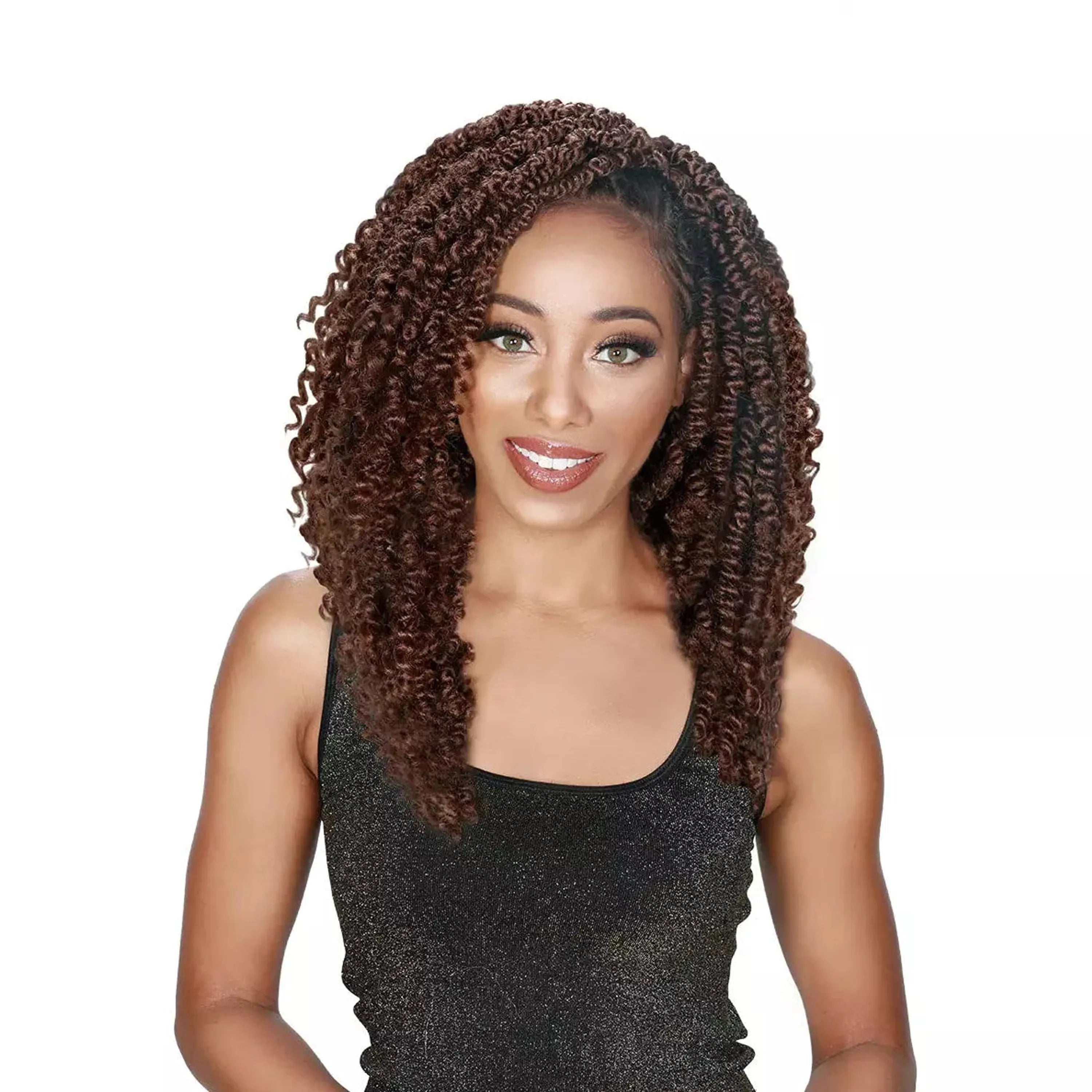Zury: V11 Passion Twist 14"15"16" One pack of crochet hair is enough to style one's hair V shape finish Natural hair layered Loop Application Trendy curly style in braids Soft touch with voluminous hair style