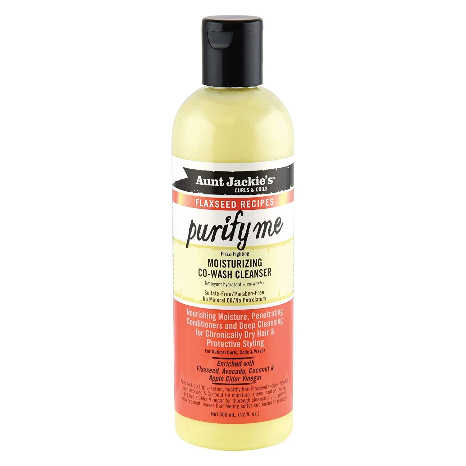 Aunt Jackie's Flaxseed Recipes Moisturizing Co-Wash Hair Cleanser Product details Aunt Jackie's Flaxseed Recipes Purify Me Frizz-Fighting Moisturizing Co-Wash Hair Cleanser - 12...