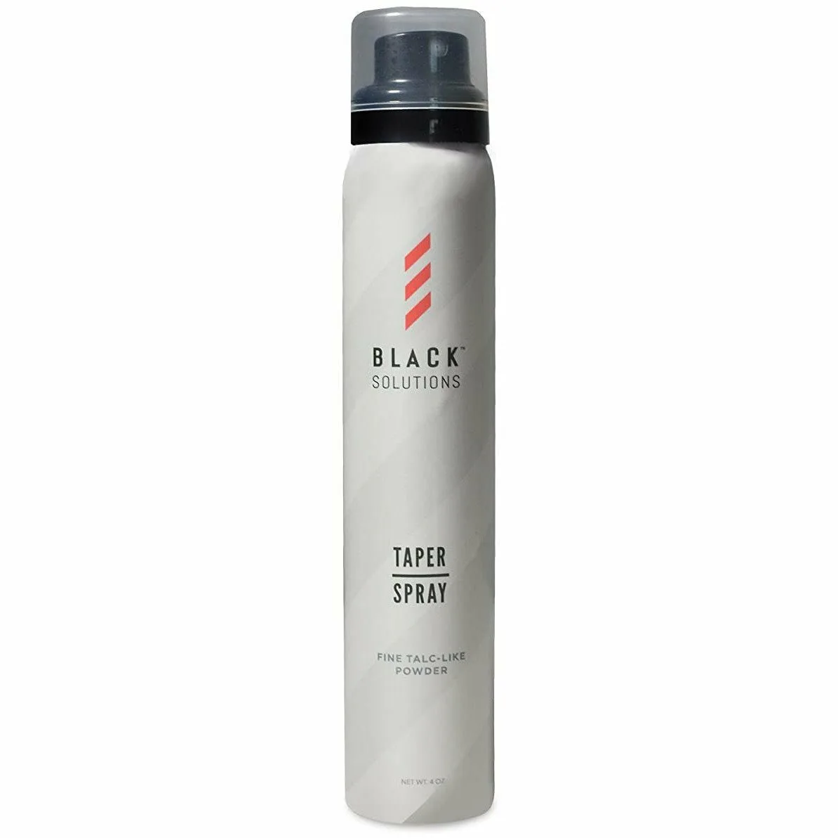 Black Solutions Taper Spray Creates flawless neck tapers, fades and clean ups. talc like powder spray cleans up neck where unseen hair is left behind creates better even haircut