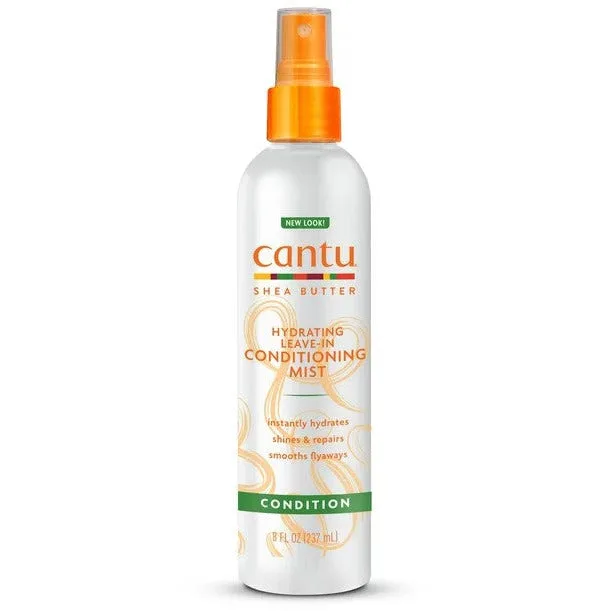 Cantu Hydrating Leave-In Conditioning Mist Instantly shines, hydrates and conditions deprived hair. Made with pure shea butter to replace vital moisture, revealing stronger, healthier hair with a natural shine. Shines, hydrates & repairs damage Detangles to reduce breakage Prevents frizz & flyaways Great for: relaxed, texturized, colored & permed hair. Benefits: Instantly hydrates, shines & repairs Delicately detangles Prevents frizz & flyaways Great for medium to thick textures Styling Tips: Apply Cantu Thermal Shield Heat Protectant to prevent damage caused by heated styling tools. After heat styling, apply Cantu Oil Sheen Deep Conditioning Spray to provide extra protection from split ends and breakage. HOW TO USE Spray on damp hair. Do not rinse. Style as usual.