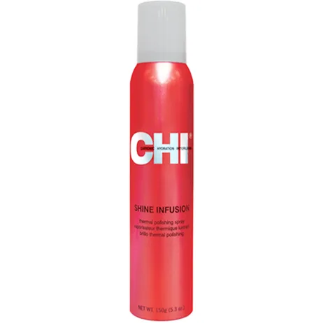 CHI's Shine Infusion Thermal active shine spray that instantly gives polished shine with out added weight or oils. Helps to repair split ends Eliminates frizz Adds incredible shine