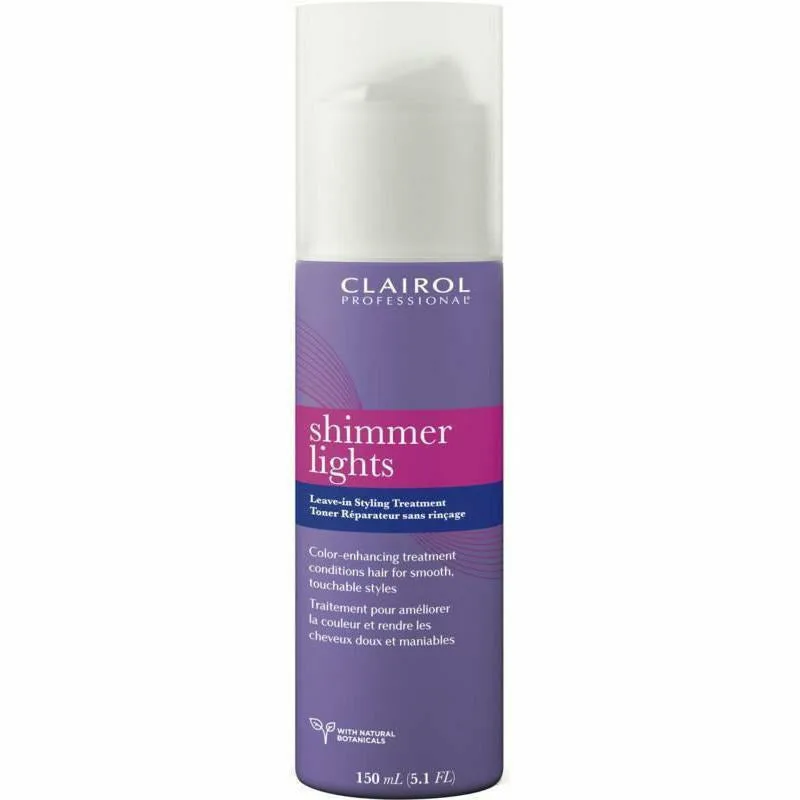Shimmer Lights Leave-in Styling Treatment is a color-enhancing treatment that conditions hair for smooth, touchable style while the botanical-rich formula nourishes hair to reduce breakage while styling. Violet pigments help restore lost moisture for silky, shiny, healthy-looking hair. This leave-in treatment is your blonde's secret weapon to keeping hair manageable and touchable all day long. Color-enhancing treatment conditions hair for smooth, touchable style With violet pigments to help restore lost moisture for silky, shiny, healthy-looking hair Nourishing formula helps reduce breakage while styling With botanical extracts