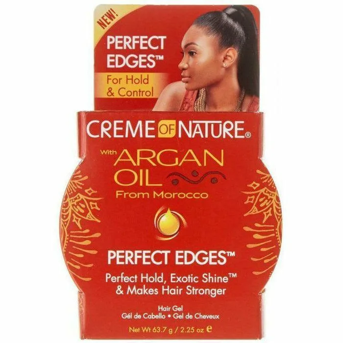 Creme of Nature with Argan Oil Perfect Edges hair gel infused with Argan Oil from Morocco controls and holds down edges, while moisturizing and adding Exotic Shine to the hair. This nutrient- rich formula makes hair stronger and gives superior hold without flaking. Perfect for creating sleek, smooth styles, ponytails, sculpting and styling the hair. Great for natural & relaxed hair! Perfect for maintaining sleek, smooth styles, ponytails, sculpting & styling the hair on-the-go Perfect for all hair types Controls & holds down edges Nutrient-rich formula makes hair stronger Infused with Argan Oil from Morocco