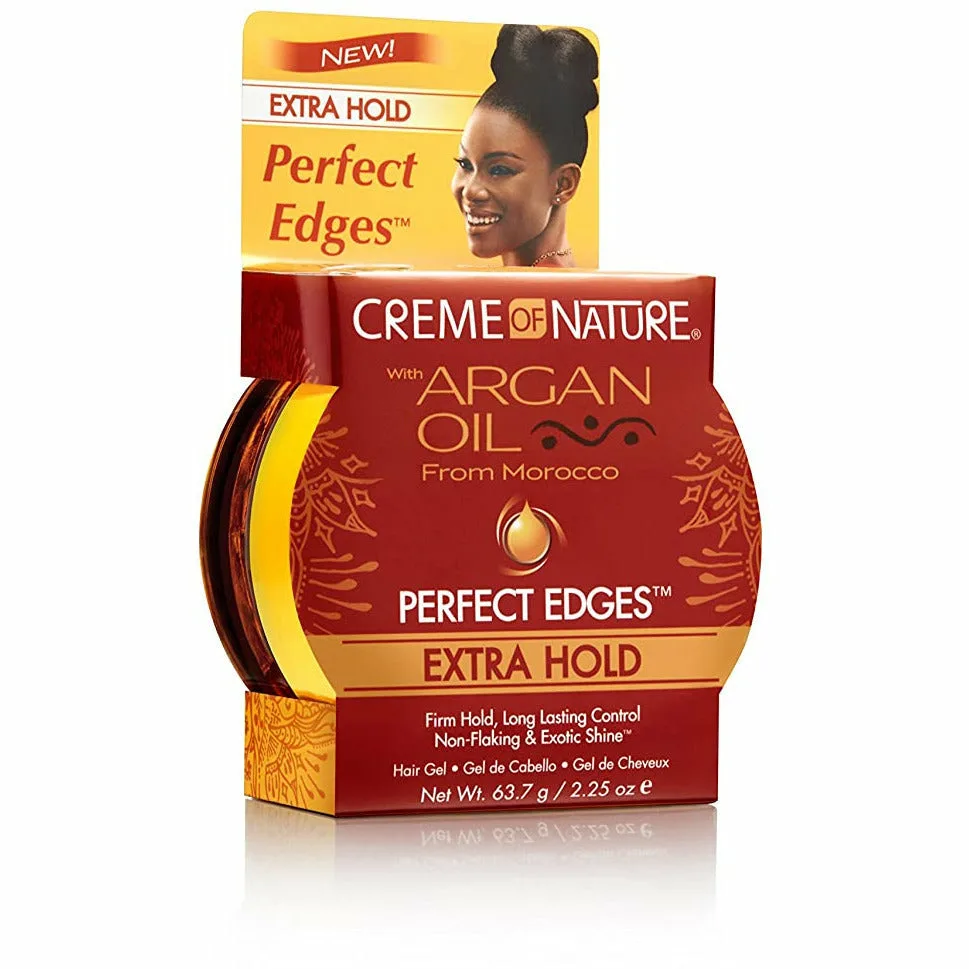 Creme of Nature Perfect Edges Extra Hold edge gel is infused with Argan Oil that is perfect for covering gray roots and minimizing the appearance of thinning edges while creating sleek, smooth styles. Non-Sticky, Non-Greasy and Alcohol-Free Extra Firm and Long-Lasting Hold Infused With Argan Oil Non-Flaking