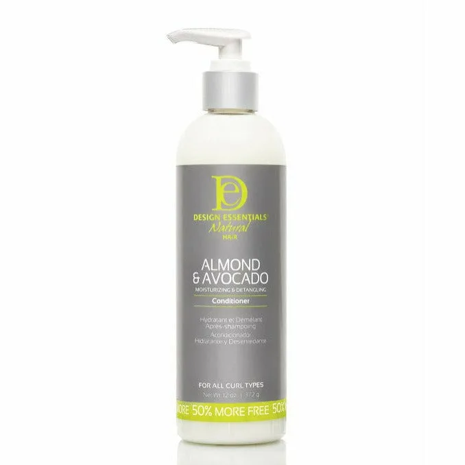 Almond & Avocado Moisturizing & Detangling Conditioner 12oz Our Almond & Avocado Moisturizing & Detangling Conditioner is a time-saver. Nourish and replenish any moisture your curls may be lacking while reducing, frizz, breakage, and any appearance of dryness. Say goodbye to tangles and knots with Design Essentials® Natural Almond & Avocado Moisturizing & Detangling Conditioner . This lush product uses the hydrating power of almond, avocado, and shea butter to nourish and replenish hair's moisture. Our formula softens, moisturizes, and detangles to leave hair both soft and manageable–another beautiful perk for your Wash Day. Benefits Restores moisture and improves hair health from the inside out Eases detangling process for improve manageability Reduces the appearance of dryness, frizz and breakage Free from parabens, paraffin, petrolatum and mineral oil Key Ingredients ALMOND & AVOCADO provide intense moisture and hydration SHEA BUTTER restores moisture and improves hair health from the inside out COCONUT MILK replenishes moisture and aids as a natural detangler How To Use: After shampooing, towel-blot. Apply from ends to scalp. Comb through for even distribution. Allow to sit for up to 3 minutes. Rinse thoroughly.