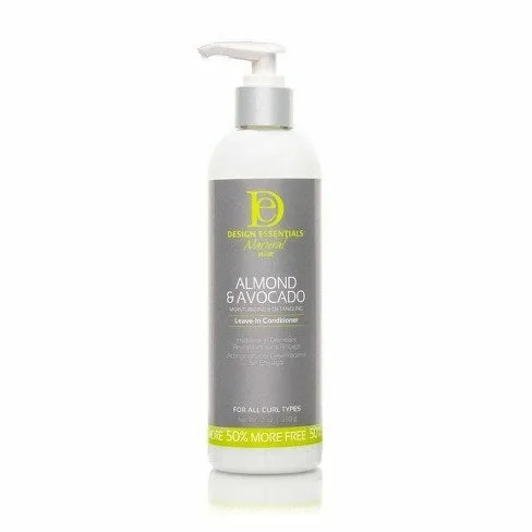 Design Essentials: Almond Avocado Leave In Conditioner All leave-ins are not made equal. So choose the best for your hair. Our Design Essentials® Natural Almond and Avocado Detangling Leave-In Conditioner is enriched with almond, avocado, jojoba oils–plus nutrient packed botanicals. This nourishing formula penetrates strands quickly to soften and smooth the cuticle for easy detangling and the ultimate frizz control. • Replenishes moisture and smooths the cuticle for healthier hair • Saves up to 30 minutes detangling time • Lightweight enough to layer under any Design Essentials® Natural •Hair styling product for added softness and shine • Free from parabens, paraffin and petrolatum