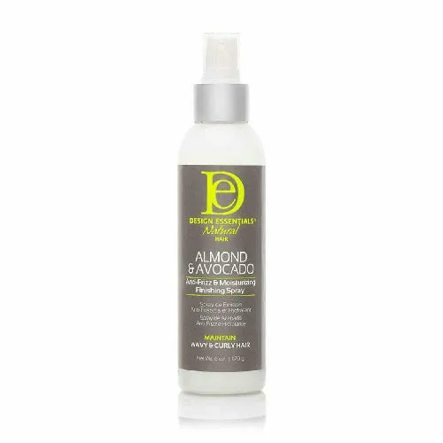 Our Design Essentials® Anti-Frizz & Moisturizing Finishing Spray protects your waves and curls from frizz, UV rays, and other climate conditions. It shields hair from humidity, making it the perfect post-styling moisture booster. Simply spray to tame frizz and add radiant shine without weighing strands down. Defends hair from frizz, UV rays and other climate conditions Locks in moisture and seals hair cuticles Leaves an intense shine without leaving hair oily Free from parabens, phthalates, silicones, mineral oil and gluten ALMOND nourishes hair and leaves a luminous shine AVOCADO strengthens the hair shaft, prevents breakage and provides intense moisture How to Use: Hold bottle 6 to 8 inches away from head and mist evenly.