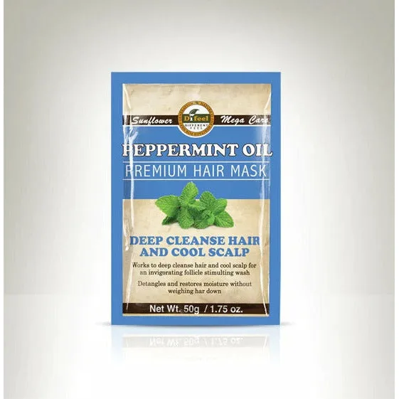 Difeel: Premium Hair Mask-Peppermint Oil is a high-performing series of deep conditioning hair masks which are solution oriented specific to variety of hair care concerns. Works to deeply cleanse hair and cool scalp for an invigorating follicle stimulating wash. Detangles and restores moisture without weighing your hair down. How to Use: Apply to clean, wet hair and comb through completely. Leave in for up to 7 minutes. Rinse thoroughly. No heat required. Do not use more than twice a week.