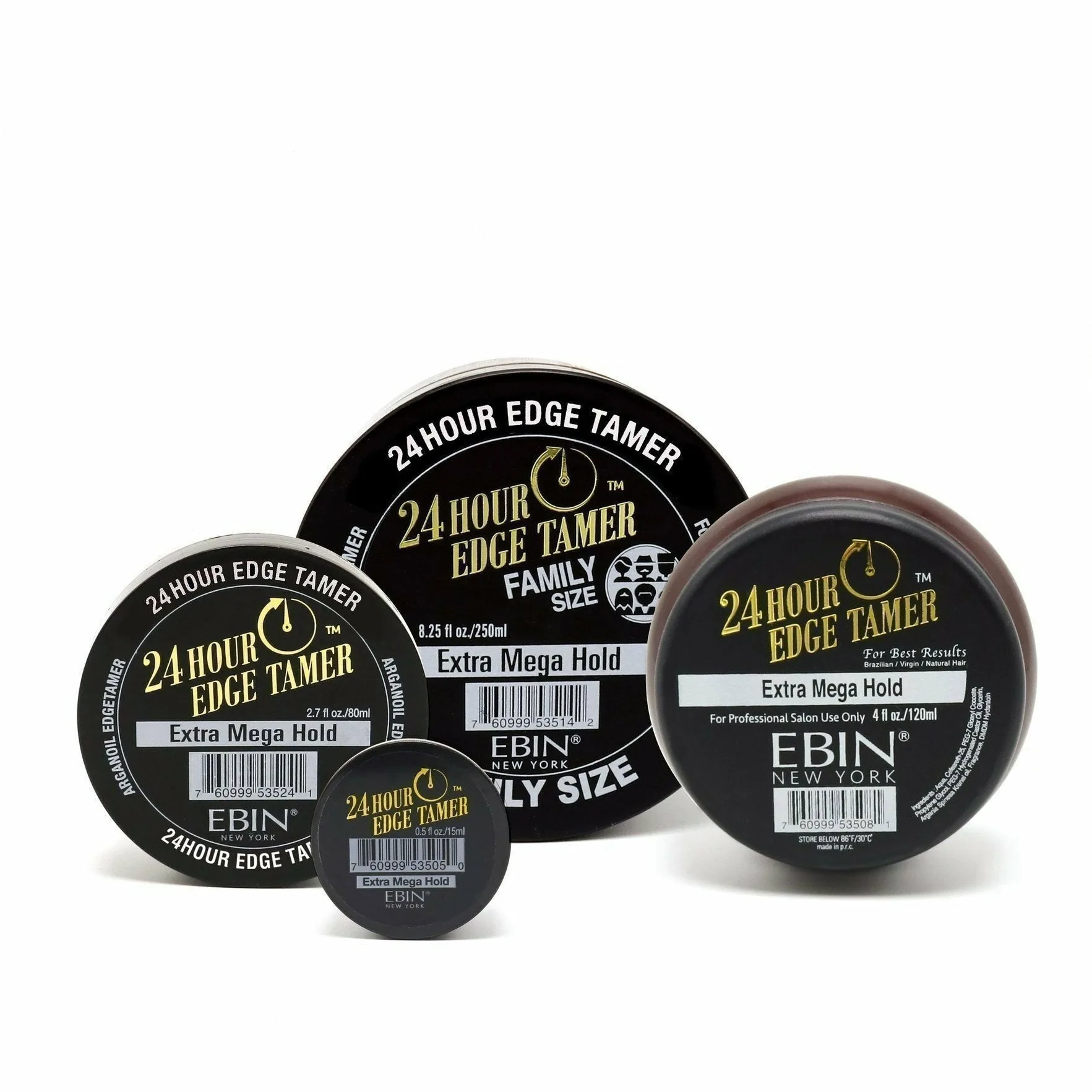 EBIN 24 Hour Edge Tamer - Extra Mega Hold 24 Hour Edge Tamer , world famous edge control highly endorsed by female celebrities and Youtube beauty star bloggers. 24 hour Edge Tamer is divinely loved by millions of consumers on daily basis and it gives you an unrivaled strong hold in order to tame your edges of hairlines in a flawless finish look. Hair gel that provides nourishing and maximum hold with no flaking or white residue on stubborn unruly edges. ❤ Extreme Firm Hold ❤ No Flaking or White Residue ❤ Long Lasting ❤ Not Oily ❤ Pleasant Scent How to use Apply a small amount evenly through damp or dry hair and style as desired. Ingredient AQUA, CETEARETH-25, GLYCERIN, PROPYLENE GLYCOL, MALTITOL, PEG-7 GLYCERYLCOCOATE, PEG-7 HYDROGENATED CASTOR OIL, DISODIUM EDTA, ARGANIA SPINOSA KERNEL OIL, DMDM HYDANTOIN, FRAGRANCE (PARFUM), LIMONENE, LINALOOL, BENZYL BENZOATE