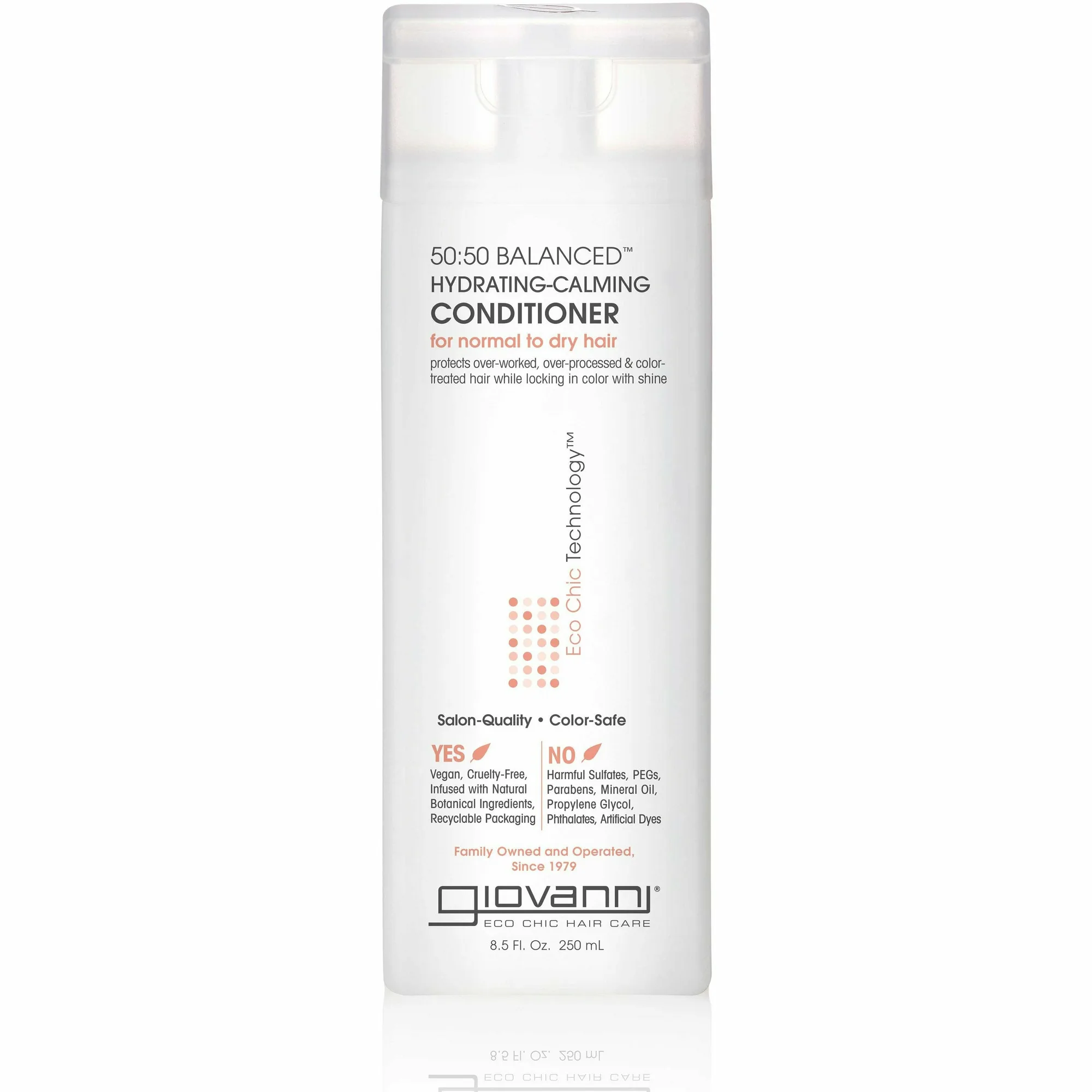 It’s half of this and half of that. The perfect mix, the perfect match. That’s what you’ll get with Giovanni 50:50 Balanced Hydrating-Calming Conditioner . Ideal for reawakening dry hair to the wonders of clarifying and moisturizing, this conditioner works its magic on a daily basis. A blend of organic ingredients and protection factors make dull hair the life of the party. Shine says glow for it. A blend of organic oils and botanical extracts help revitalize dull hair Adds moisture and manageability Hydrating botanical extracts smooth frizz Leaves hair perfectly pH balanced and conditioned Ideal for overprocessed, environmentally stressed hair Color-Safe Vegan-Friendly