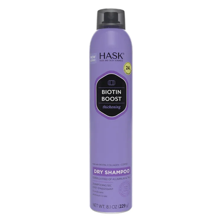 ⤠Hask Biotin Boost Thickening Dry Shampoo SIZE: 8.1oz This lightweight, ultra-fine rice starch formula, infused with biotin, collagen and coffee extract, acts quickly to soak up oil,...