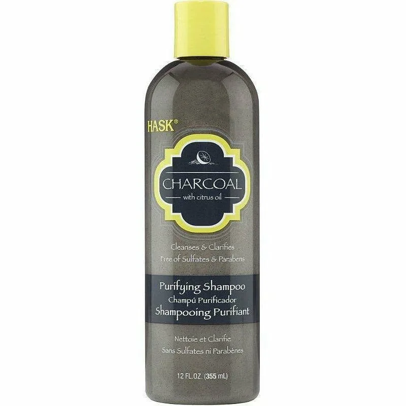 Hask Charcoal Purifying Shampoo i s gentle enough for daily use, non-staining and safe for all hair colors (natural or dyed). Charcoal, derived from coconut shells, combined with citrus oils, thoroughly cleanses and clarifies while helping to eliminate impurities from the hair and scalp. Free of sulfates, parabens, phthalates, gluten and drying alcohol. Non-staining & safe for all hair – natural or dyed