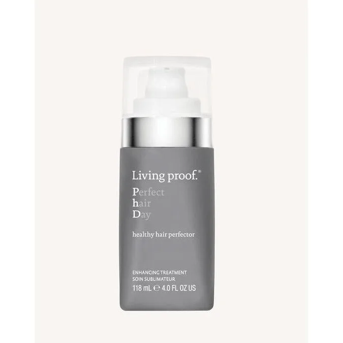 Living proof: Perfect Hair Day Healthy Hair Perfector A lightweight enhancing treatment that instantly transforms dry or damaged hair by restoring hair’s outermost protective layer, leaving hair softer, shinier, smoother + healthier-looking after one use. Restores hair’s outermost protective layer – the F-layer — to leave it looking smooth while adding softness + shine Reduces the appearance of split ends after one use Improves manageability, increasing ease of brushing, combing + styling Replenishes hairs’ lost lipids while blocking humidity to provide frizz protection Contains antioxidants to help protect against free-radical damage from UV rays and pollution How to Use Apply to damp or dry hair. Comb through. Use as often as needed.
