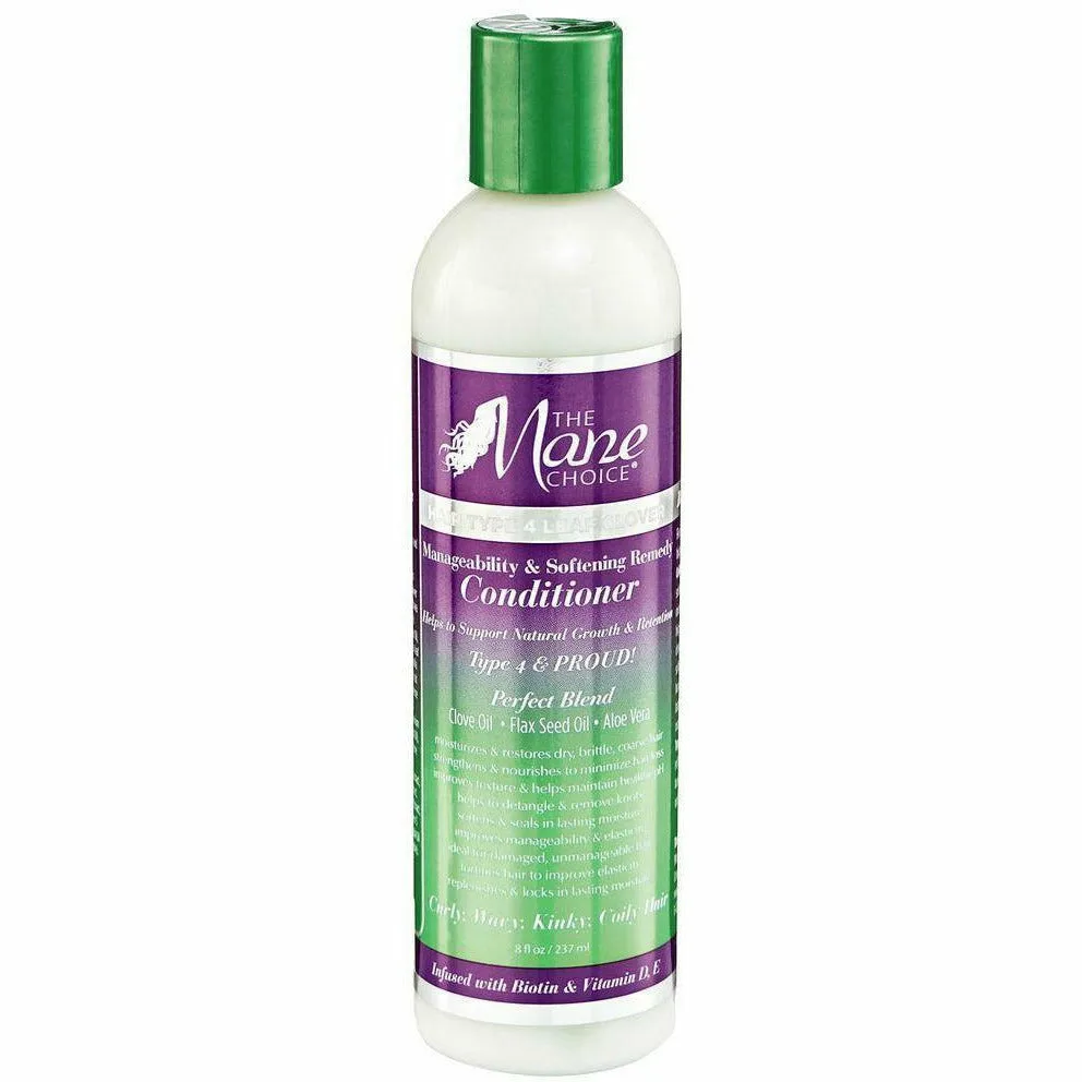 The Mane Choice Hair Type 4 Leaf Clover Manageability & Softening Remedy Conditioner is an advanced hair care system created with highly-textured hair in mind! Hair Type 4 Leaf Clover collection is a physician-formulated, moisture-rich solution designed to help eliminate dryness and minimize breakage that can be associated with highly-textured hair. Strengthens & nourishes to minimize breakage Improves texture & helps maintain healthy pH Moisturizes & restores dry, brittle, coarse hair Helps to detangle & remove knots