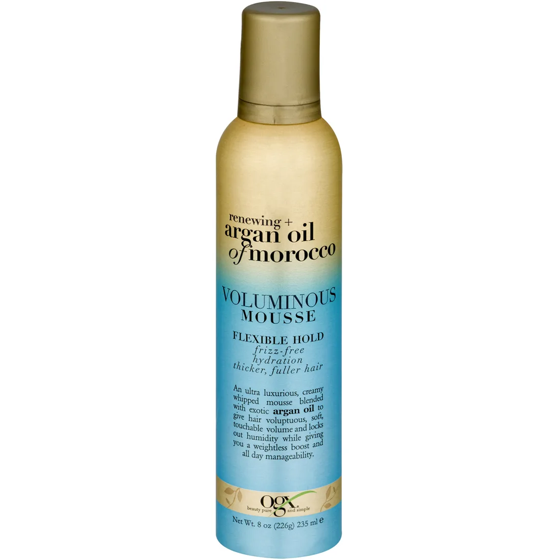 OGX Argan Oil of Morocco Voluminous Mousse helps give your hair more body and build without weighing it down, & it's flexible hold will help keep your hair soft, brushable & manageable all day long. This hair mousse helps gives your hair volume & shine. Instantly thicker, denser & full of body Adds elasticity for strong, lush hair Infused with exotic Argan Oil of Morocco