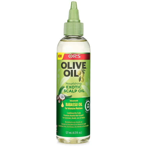 ORS Olive Oil Nourishing Exotic Scalp Oil 4.3 oz Combines the power of nutrient-rich Olive Oil and Brazilian Babassu Oil for intensive moisture; Coconut Oil, Castor Oil and Ginger Root to help strengthen, enhance shine & promote healthy hair. Lightweight & Non-greasy. Restores moisture to hair & scalp. Helps protect fragile strands.