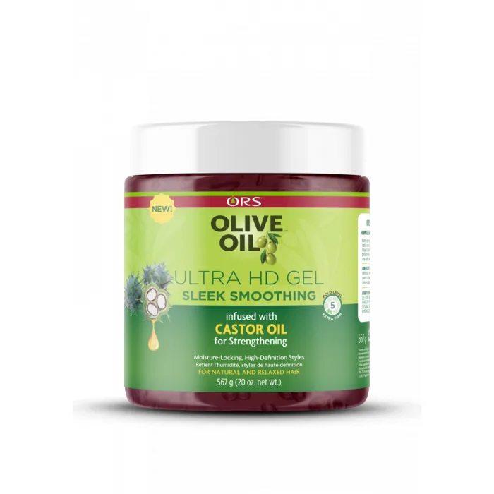 Olive Oil Ultra HD Gel Sleek Smoothing with Castor Oil 20oz The ORS Olive Oil Ultra HD Gel Curl Clumping is a moisture-locking wet gel infused with avocado oil plus our Keratin complex to strengthen and promote healthy looking hair. Ultra HD Gel Curl Clumping Gel transforms curls and dull hair into lustrous curls with moisturized definition. Moisture locking Alcohol- Free & Anti Flaking Crunch-free styling Lasting hold Defining uniform, thick curly styles – wash ‘n go, flexi rod and twist out/braid out styles
