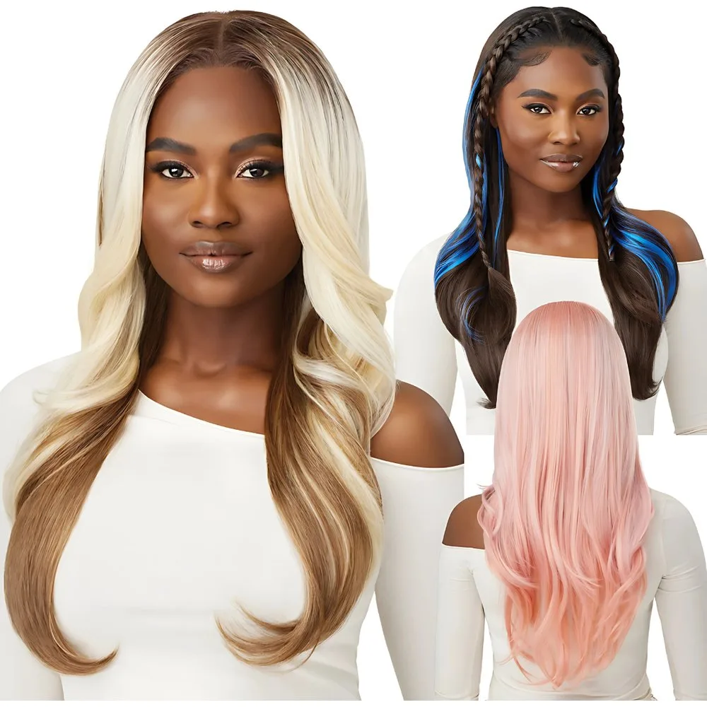Outre Perfect Hairline 13x6 Synthetic HD Lace Front Wig - Daijah Achieve effortless glam with the Outre Perfect Hairline 13x6 Lace Front Wig in the style Daijah! This 24” synthetic wig boasts loose, voluminous curls with a natural yaki texture, delivering a lush look that mimics real hair. The 13x6 HD Lace Frontal features advanced Faux Scalp technology, making the lace virtually invisible for a seamless, natural hairline. Available in bold shades like 3CR Frosted Pink Ombre and DRFF4/Honey Auburn , Daijah offers a secure and stunningly realistic look, perfect for any occasion. Length : 24" Texture : Yaki, Loose Curly Lace : 13x6 HD Lace Frontal Colors Shown : 3CR Frosted Pink Ombre, 4/Sapphire Kiss, DR6/OL Blonde Toffee