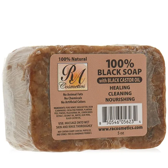 ⤠RA Cosmetics 100% African Black Soap [Size: 5 oz] RA Cosmetics 100% African Black Soap is an ancient cosmetic cleansing product from West Africa. Handcrafted from farmed plantain...