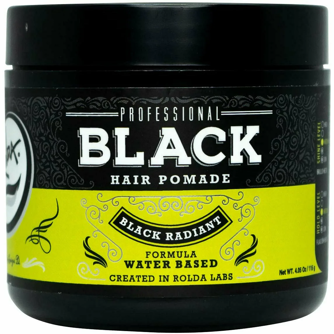 Rolda: Black Hair Pomade covers white & gray hairs & provides the less wet look of a water-based pomade. The pomade uses our original Black Radiant formula, which subtly covers lighter hairs to give dark hair a darker, bolder look as well as a musky, masculine scent . • Black Radiant Formula • Residue Free • Non-Greasy • Water Based Formula • Medium Hold • Medium Shine