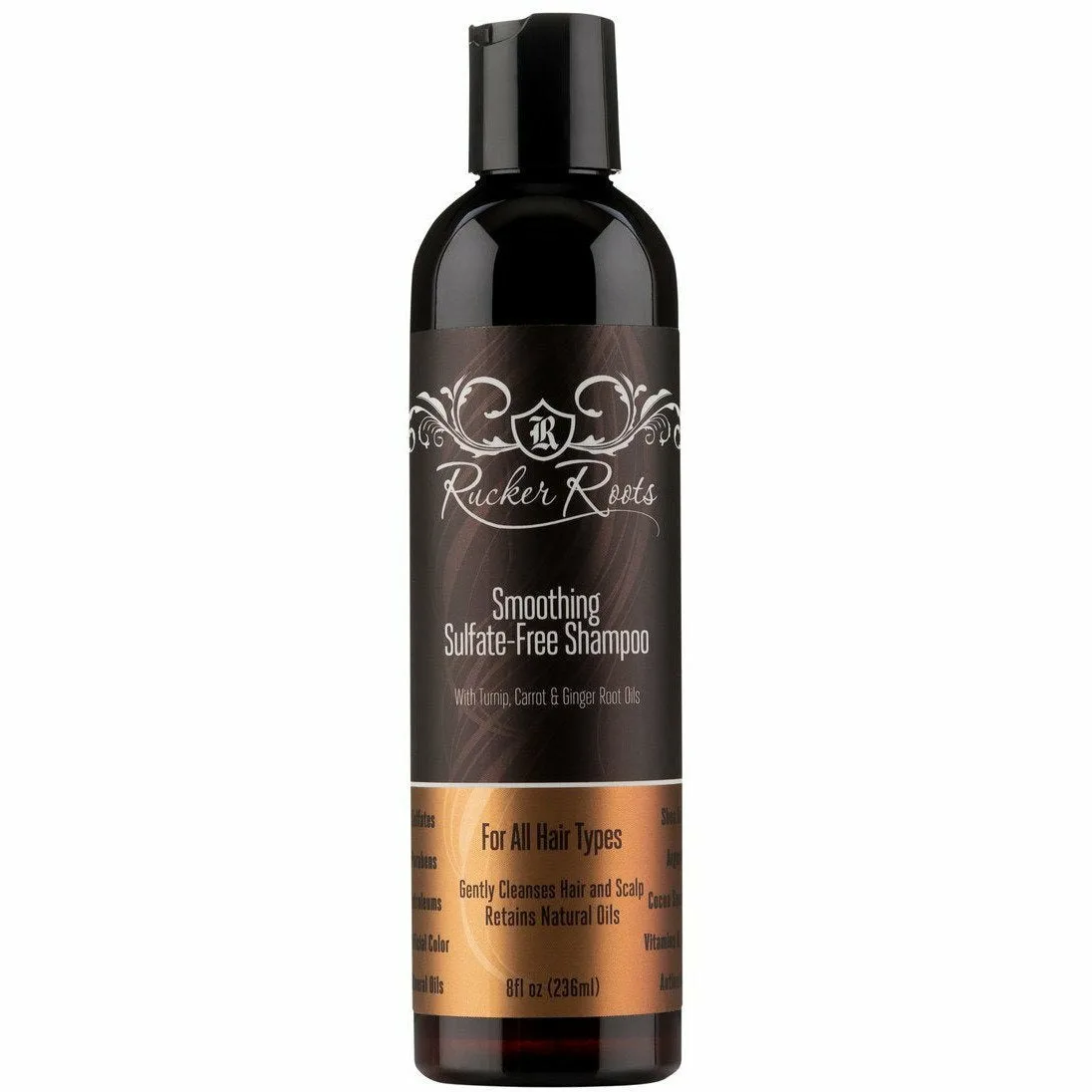 Rucker Roots Smoothing Shampoo has olive oil, coconut oil, aloe leaf juice, Vitamins A,C,E,K and B, as well as carrot, ginger and turnip root oils essential for strong, lustrous, growing hair. For All Hair Types 100% Vegan No Parabens No Sulfates No Artificial Color Plant Based Preservatives No Petroleum No Mineral Oil Your scalp will be cleansed and stimulated without stripping your hair's natural oils. The natural ingredients from Rucker Roots will leave your hair stronger and longer because healthy hair starts at the root.... Made In The USA 100% Vegan Family Owned Cruelty Free Packing made from 100% recycled plastics
