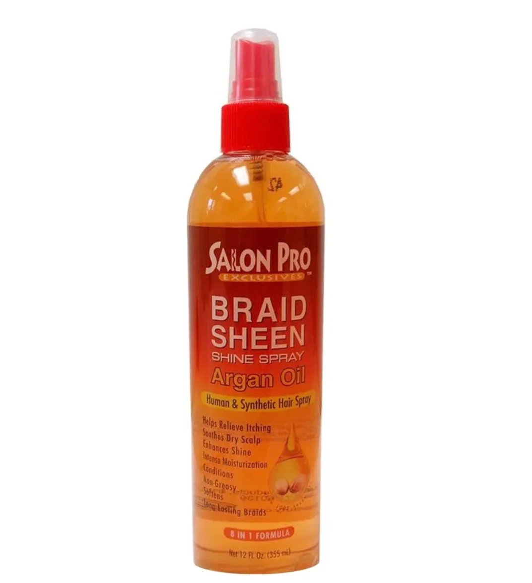 ⤠Salon Pro Argan Oil Braid Sheen Spray [SIZE: 12 oz] Salon Pro Braid Sheen Shine Spray Argan Oil Formula is a combination of moisturizing and conditioning ingredients designed to condition,...