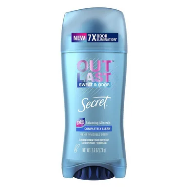 Secret Outlast Antiperspirant Deodorant, Invisible Solid Completely Clean, 2.6 Oz