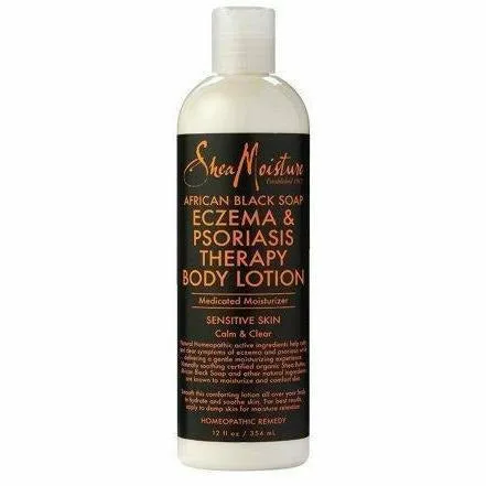 Shea Moisture African Black Soap Soothing Body Lotion Our naturally soothing blend of African Black Soap and organic Shea Butter helps calm and hydrate dry skin. Oats and Aloe Vera help soothe.