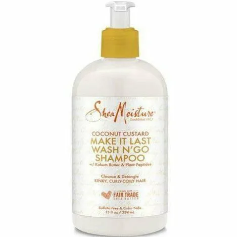 Shea Moisture Coconut Custard Make It Last Wash N' Go Shampoo Love your Wash N' Go but wish it would last longer? Our 5 step Make It Last style system is the answer! Start with this low-lather cleanser. gently cleanses detangles hair provides intense hydration and shine.