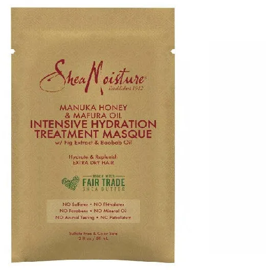 SheaMoisture's Manuka Honey & Mafura Oil Intensive Hydration Hair Masque intensely conditions while infusing hair with a powerful dose of moisture and nutrients. Certified organic Shea Butter, Honey, Mafura and Baobab Oils are blended with antioxidant-rich African Rock Fig to restore and lock in moisture while deeply conditioning. Smoothes and fortifies follicles for stronger, healthier frizz-free hair. Made with natural and certified organic ingredients. Manuka Honey contains anti-inflammatory properties that soothe the scalp. Helps create a moisturizing barrier. Mafura Oil contains high levels of beneficial oleic acid that helps replenish oils stripped from hair. African Rock Fig contains antioxidant-rich Vitamin C, which helps keep hair looking vibrant.