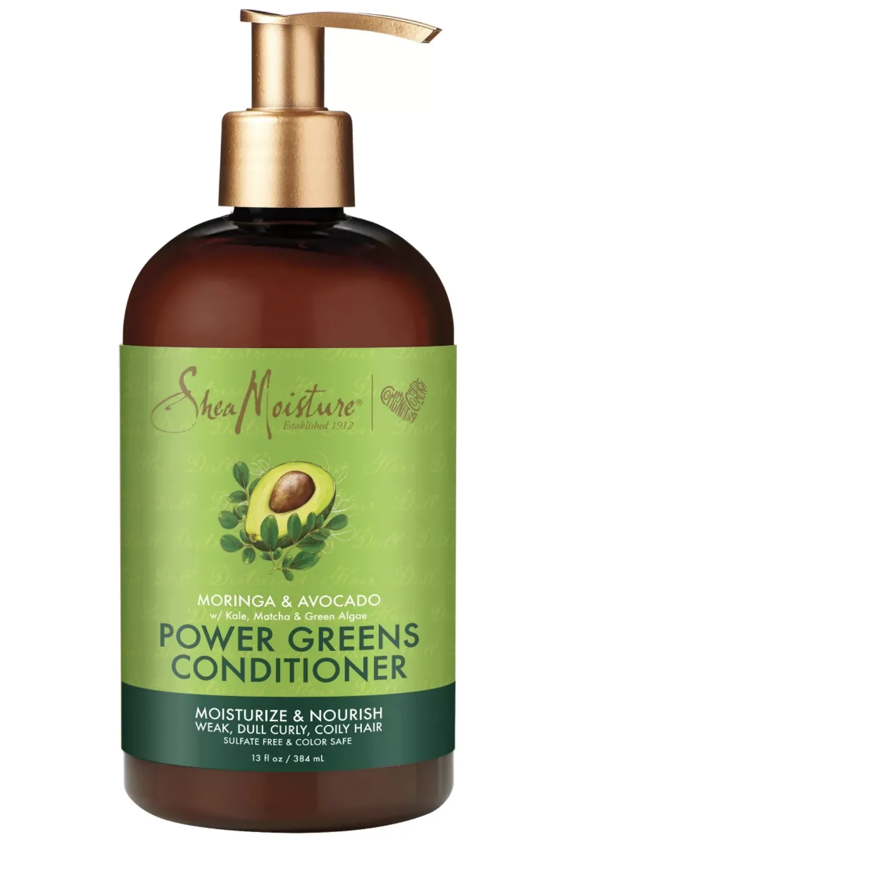 Power Greens hair conditioner by Shea Moisture is a moisturizing deep conditioner for natural curls that works as a cleansing conditioner to nourish natural hair and all curl types. Deeply nourish with this dry hair conditioner by Shea Moisture that replenishes, leaving behind fuller, shinier hair. This conditioner for curly hair is made with Moringa and Avocado. Made with other powerful greens like Kale, Matcha Tea and Green Algae, this deep conditioning hair treatment is also packed with fair trade Shea Butter and is the best conditioner for dull, dry curls. Moisturize, detangle and soften with this deep moisturizing conditioner to improve the manageability of your hair; this shea conditioner delivers intense nourishment with 7x more shine when used as the third step in the 4 step power regimen. Apply this conditioner to clean wet hair. Gently comb through from roots to ends. Leave hair care in for up to three minutes, then rinse. For best results, cleanse first with Power Greens Shampoo. No sulfates, no parabens, no phthalates, no propylene glycol, no mineral oil, no animal testing and no petroleum in this deep conditioner and cleansing conditioner hair care. Unveil the healthiest look for your hair yet! Key Benefits: Power Greens hair conditioner by Shea Moisture is a deep moisturizing conditioner that works as a cleansing conditioner to nourish natural hair and all curl types. This conditioner for dry hair replenishes, leaving behind fuller, shinier hair. This deep conditioning hair treatment is also packed with fair trade Shea Butter and is a great conditioner for dull, natural curls. Conditioner key