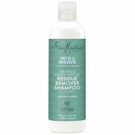 Shea Moisture: Wig & Weave with Tea Tree & Borage Seed Oil Residue Remover Shampoo w/ Aloe SheaMoisture Tea Tree and Borage Seed Oil Residue Remover Shampoo is deep cleansing shampoo, purifying shampoo and nourishing shampoo for synthetic and natural hair. This gentle, yet effective hydrating shampoo, sulfate free clarifying shampoo and anti residue shampoo gets rid of excess buildup from our bonding glue after removing your wig or weave. Infused with Tea Tree Oil, Borage Seed Oil and Aloe Vera this womens shampoo, detox shampoo and tea tree oil shampoo quickly lifts away leftover residue without stripping hair's natural moisture. SheaMoisture's shampoo for hair or weave leaves hair soft, easy to manage and shiny; use this tea tree shampoo and smoothing shampoo as a daily shampoo. Safely remove wig. Apply shampoo to wet hair and along hairline, targeting remaining adhesive residue. Use fingertips to massage sulfate free shampoo until hair is clean. Tip: Shampoo to refresh wig. All SheaMoisture hair products, like this hair shampoo, moisture shampoo and deep cleaning shampoo, are formulated with no parabens, phthalates, mineral oil or petrolatum. SheaMoisture is the legacy of Sofi Tucker, a pioneering mother of four and entrepreneur who sold Shea Butter, African Black Soap and homemade beauty preparations in Sierra Leone in 1912. We honor her vision by continuing to formulate with Raw Shea Butter handcrafted by women in Africa. With every purchase, you show support of our mission to reinvest back in our communities.