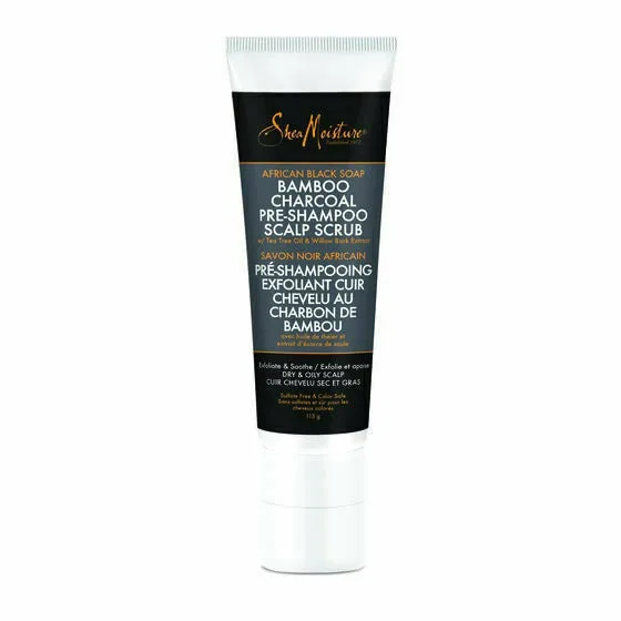 SheaMoisture:African Black Soap Bamboo Charcoal Pre-Shampoo Scalp Scru 4oz Take care of your scalp with this pre-wash exfoliator. Unique scrubbing nubs and Charcoal particles help instantly lift clogging impurities, excess oil and flakey build up from the scalp. African Black Soap, Bamboo Charcoal, Tea Tree Oil and Willow Bark blend together in a gentle formula which leaves scalp feeling refreshed with a cooling experience. Instructions : Section hair and squeeze gel directly onto wet scalp before shampooing. Use the scrubbing nubs to gently massage into scalp, using circular motions to lift flakey build up. Leave on for up to 5 minutes. Rinse with warm water. Follow with our DEEP CLEANSING SHAMPOO.