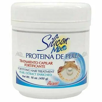 Silicon Mix: Proteina De Perla Treatment 8oz, 16oz Avanti Silicon Mix Proteina De Perla Fortifying Hair Treatment Pearl Extract Enriched repairs and nourishes the hair giving the shine, vitality and softness that it needs to look healthy and smooth. Contains Pearl Extract, a natural marine product that rejuvenates and fortifies the hair and Luster Finish to create lustrous and healthy looking hair and repel humidity, avoiding frizz. Direciton: Wash hair and apply with massages. Leave on 3 or more minutes depending on the condition of the hair. Rinse.