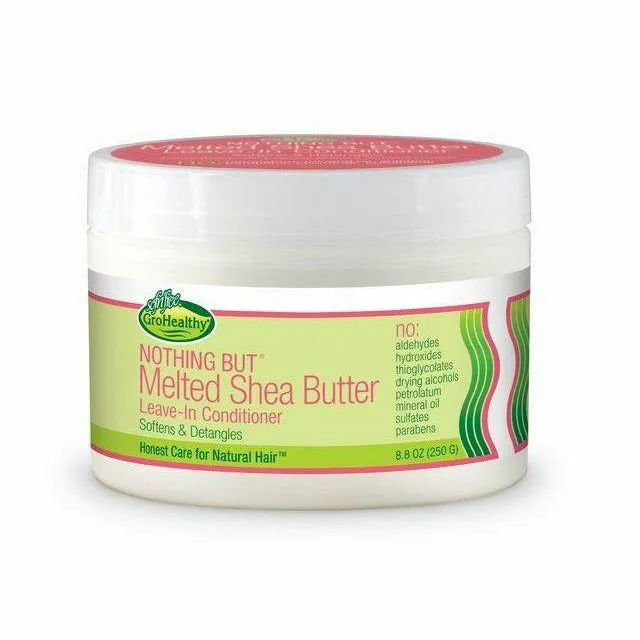 GroHealthy - Nothing But Melted Shea Butter Leave-In NO Aldehydes, Hydroxides, Thioglycolates, Drying Alcohols, Petroleum, Mineral Oil, Sulfates, Parabens Weightless Leave-In moisturizer that seals in conditioning and primes hair for Pure Pudding Softens, Smoothes and leaves Natural Curls Hydrated and Frizz-Free Use prior to natural styling products or blow drying