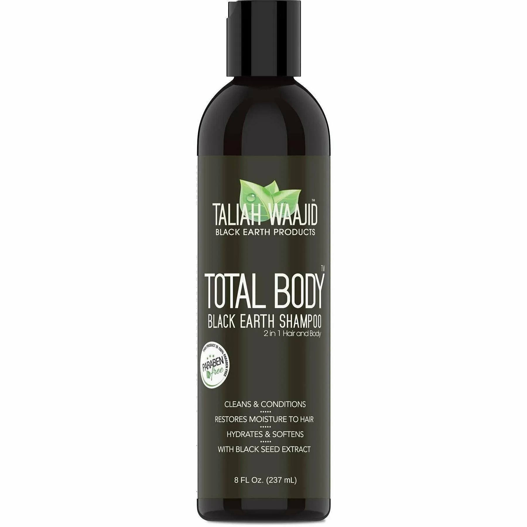 Taliah Waajid Total Body Black Earth Shampoo 2-IN-1 Hair and Body gently cleans while softening. No harsh ingredients and can be used on your Total Body. Natural ingredients such as Blackberry Extract, Rosemary, Wheat Germ, Yarrow Root, Olive Oil, Vitamin E and Silk Amino Acids will keep your hair, scalp and skin clean, conditioned, and incredibly soft. Great for dry, damaged, and over processed hair Multi-use product that can be used on both hair and body All natural ingredients to keep hair and skin feeling clean, moisturized, and soft