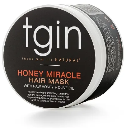 tgin Honey Miracle Hair Mask is like an instant make over for dry, damaged or colored treated hair. This luxurious deep conditioner contains raw honey for softer, shinier tresses and jojoba and olive oils, which nourish and heal strands in need of repair. Key Benefits: Restores life to dry, damaged, or color treated hair Improves shine and manageability Locks in moisture and repairs damage Reduces shedding and breakage No parabens, sulfates, petrolatum, lanolin, artificial colors, or animal testing BRING YOUR NATURAL HAIR BACK TO LIFE – Our Honey Miracle Hair Mask truly is a miracle treatment for your hair! Made with Raw Honey to moisturize you hair, making it softer and shinier! Also reduces flakiness and dry itchy scalp. Restore health and strengthen damaged and over processed hair to give your hair a beautiful and healthy look. REDUCE SHEDDING AND BREAKAGE – Ingredients also include Olive and Jojoba oils which provide vital nutrients to your hair such as Vitamins A, E and D to nourish and heal strands in need of repair. Keeps your hair moisturized and less prone to breakage helping maintain your hair’s length. FRIZZ CONTROL! – Reduces frizz by smoothing the hair’s cuticle, adding natural shine! NATIONAL MEDIA RECOGNITION - Our products have been featured in several publications such as Essence Magazine, Ebony, Marie Claire, Black Enterprise, USA Today, Heart & Soul, and Sophisticate's Black Hair. CONDITION YOUR HAIR DEEPLY – Olive oil deeply moisturizes by penetrating the hair shaft while the jojoba oil seals and locks the moisture in and adds shine. Also, detangling and hydrating dull and unmanageable hair. Makes you hair more manageable and gives your locks a healthy, beautiful, and natural look.