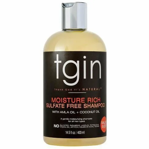 TGIN Moisture Rich Sulfate Free Shampoo for natural hair is made with a unique formula that enriches with coconut oil to gently cleanse your hair, and amla oil to reduce breakage and increase moisture retention. The result is healthy hair that is left feeling soft, smooth and moisturized. Cleans hair, gently and effectively Sulfate free formula Does not contain harsh detergents that strip the hair of its natural oils No parabens, sulfates, petrolatum, lanolin, artificial colors, or animal testing