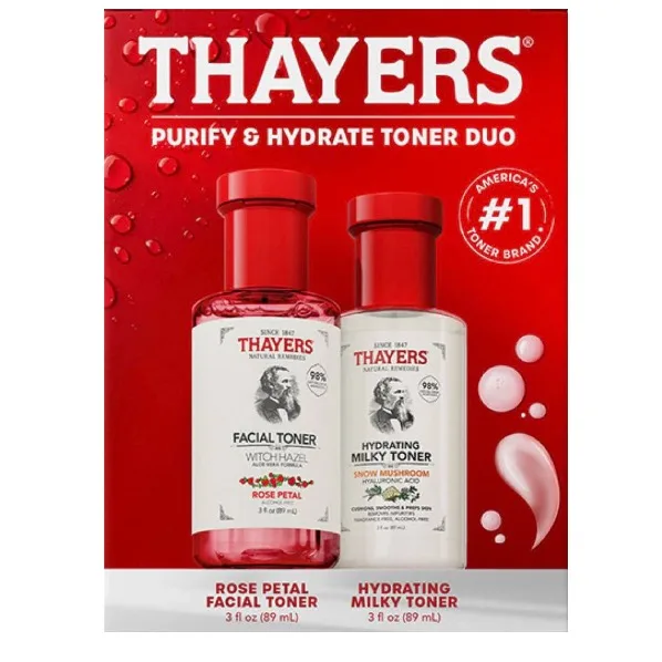 ⤠THAYERS Purify & Hydrate Toner Duo (Rose/Milky) Rose Petal Facial Toner(3oz) + Hydrating Milky Toner(3oz) Clinically tested to reduce pores An alcohol-free and pH-balanced toner...