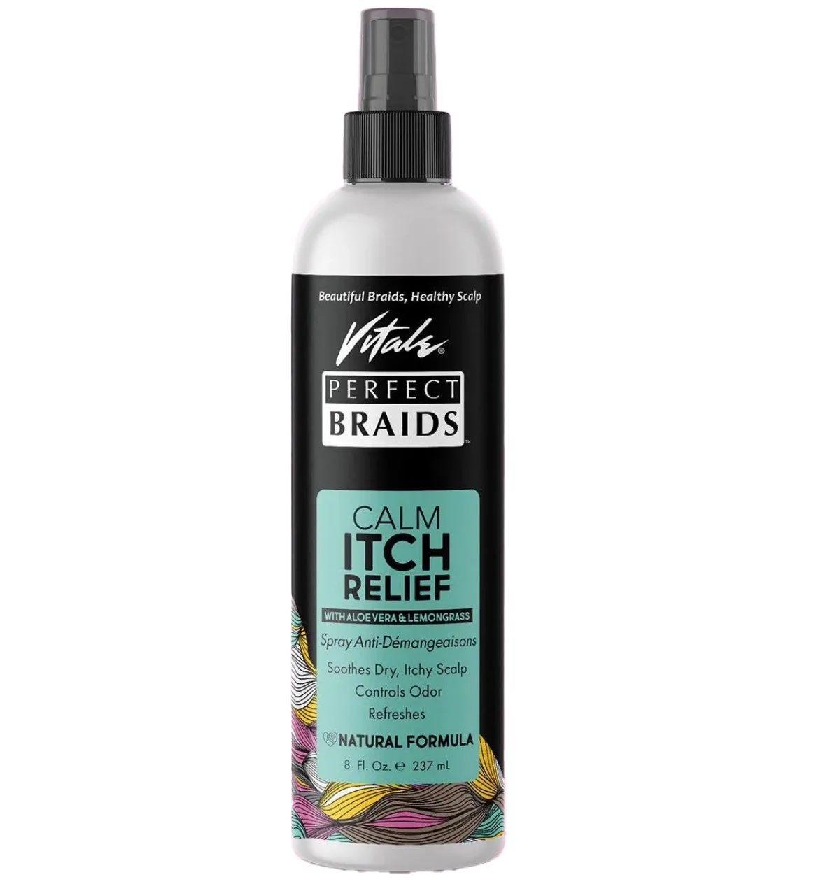 Vitale Perfect Braids Calm Itch Relief Spray Size: 8oz This braid spray offers relief and hydration you have to feel to believe. Vitale Perfect Braids Itch Relief soothes dry, itchy...